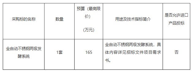 项目名称:南开大学生命科学学院全自动不锈钢两级发酵系统采购项目
