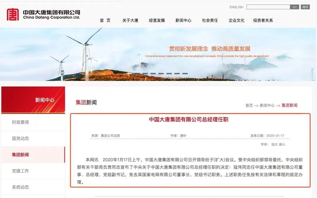 寇伟上次引发关注是在2020年1月,当时他在国家电网董事长位置上调任大唐集团担任总经理的人事调整消息轰动了整个电力行业。